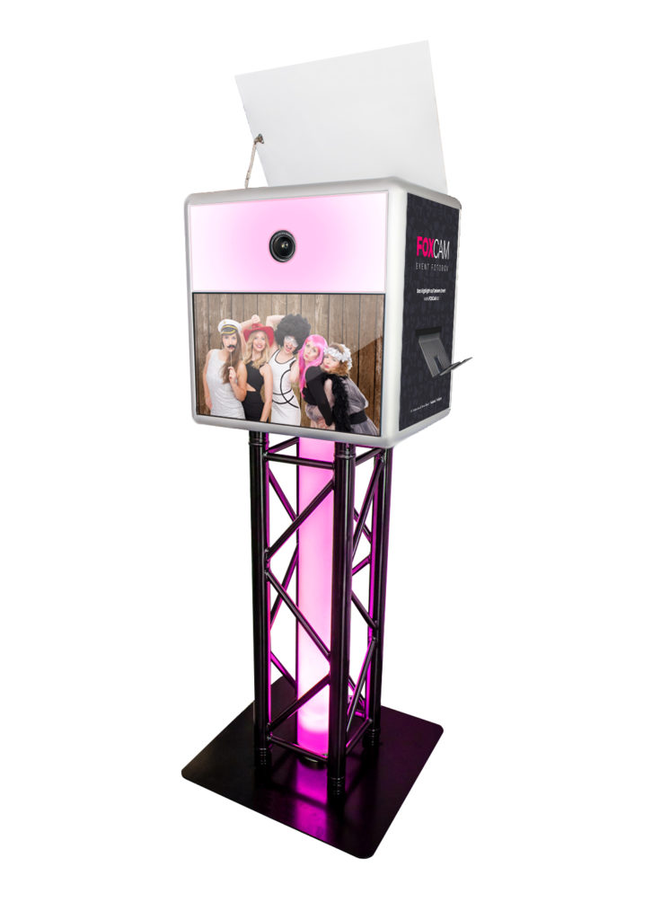 Wir verwenden eine professionell gefertigte Aluminiumkonstruktion mit einem einzigartigen Design. Durch die edle schwarze Traverse mit Lichtsäule und unserer genialen Reflektorklappe, passt unsere Fotobox zu jeder Location.